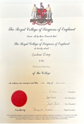 “英格兰皇家外科学院荣誉院士”证书